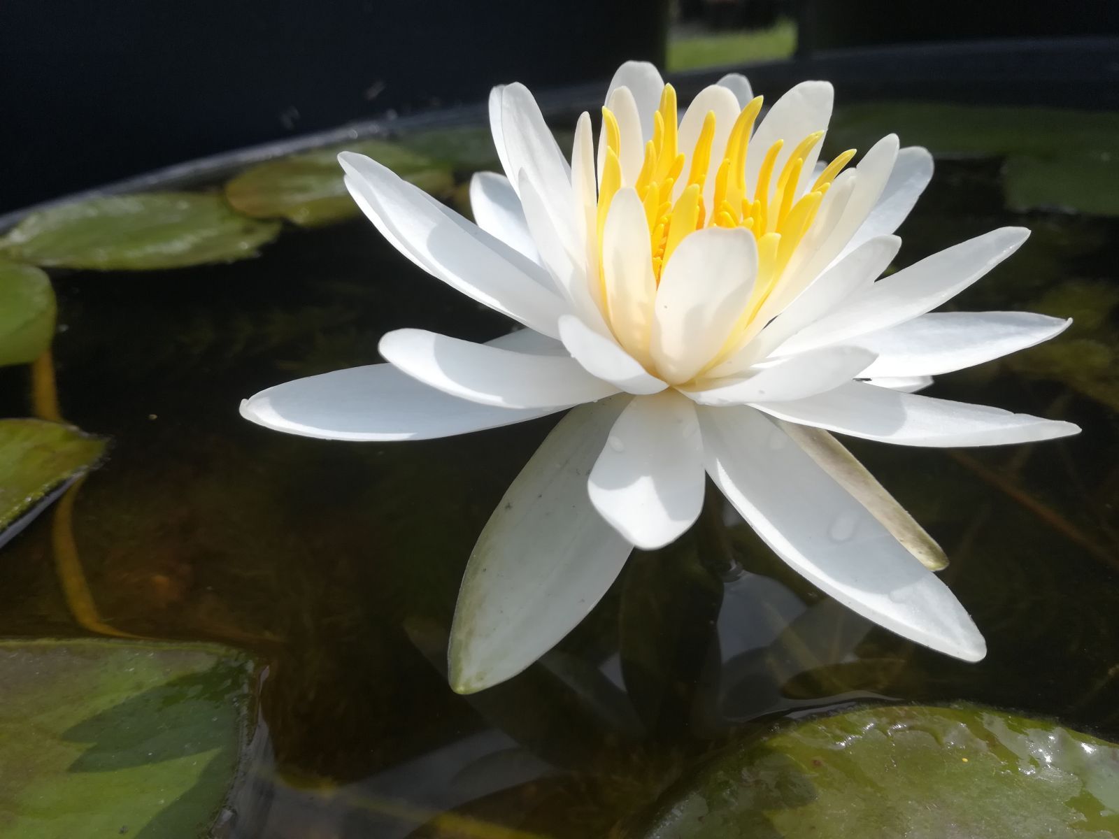 Ce petit nénuphar blanc n'est pas facile a trouver, même chez les collectionneurs, il possède une jolie fleur blanche assez plate aux pétales pointus. Ses feuilles sont vert tendre et assez grande. Ses fleurs d'un blanc assez pure sont gracieuses et parfois légèrement au dessus de l'eau.
