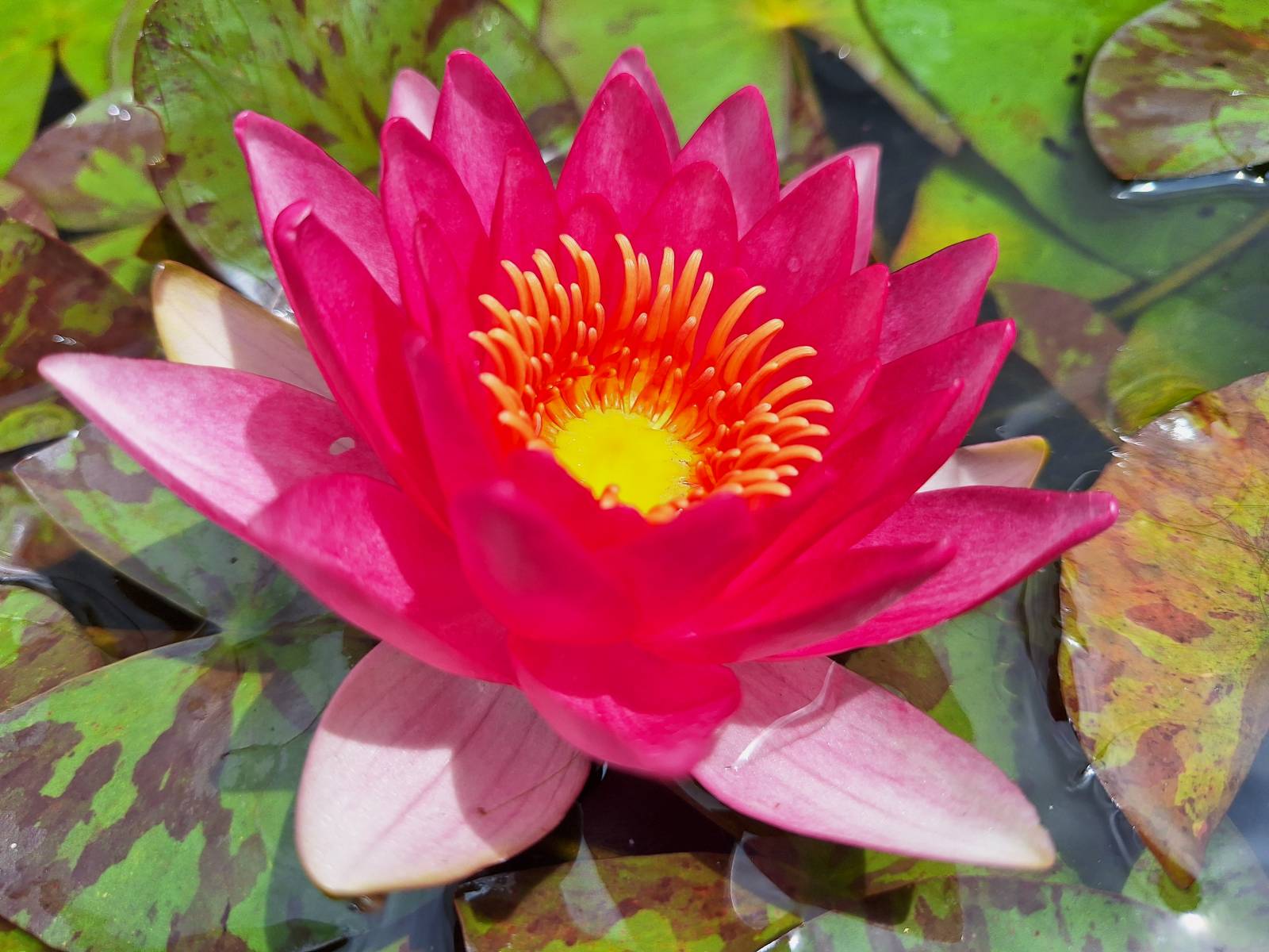 Cette variété arrivée récemment à la pépinière, possède une fleur rouge de belle taille a proportion de son développement. Sa fleur est rouge lumineux aux pétales assez pointus et larges. Son feuillage est vert, même si sur les photos actuelles, les feuilles marbrées ne sont pas les siennes. Il est assez vigoureux, très florifère, facile a cultiver au soleil.