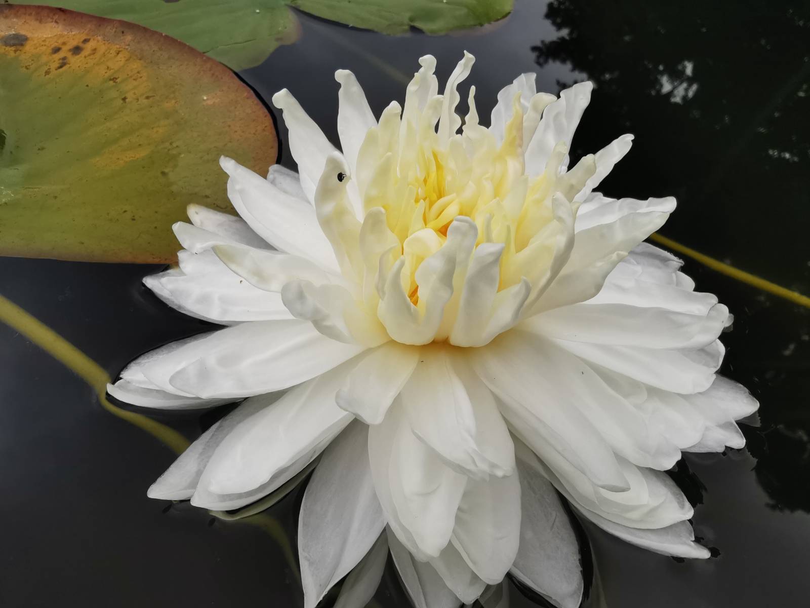 Voici un nymphéa d'origine thaïlandaise importé par la pépinière en 2019. Sa fleur est blanche et très double, souvent frisée en début de saison. Ce qui donne l'impression de gros flocons blancs flottants sur l'eau. Il est très florifère et ses feuilles sont vertes. Il est très prometteur quant a la quantité de fleurs qu'il a déjà produit.