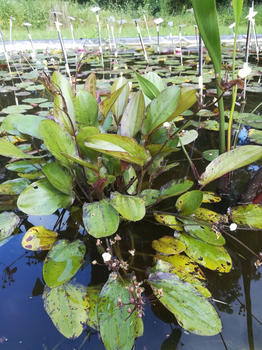 Voici une plante encore extrèmement rare parmi les aquatiques que l'on peu immerger sous plus de 30 cm. Cette plante spectaculaire de part ses feuilles qui ce développent aussi bien sous l'eau qu'au dessus de l'eau on une forme de palette, chez "Sunlight", elles sont légèrement ponctuées de marbrures pourpres. Lorsqu'elle pousse au dessus de l'eau, elle développe des tiges florales aux rosettes de fleurs blanches, puis, elle forme des jeunes pousses directement sur la zone des anciennes fleurs, elle est donc vivipare. Pour bien la réussir, il faut qu'elle soit bien immergée idéalement sous 40 à 50 cm d'eau. Elle peu monter à 40 cm au dessus de l'eau et forme une jolie touffe de feuilles remarquables. Sa rusticité reste encore à l'étude à la pépinière, mais elle est au moins rustique à -10°C.