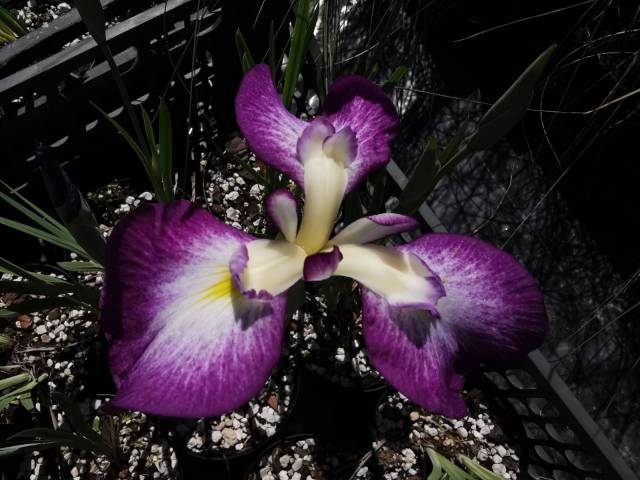 Un iris du Japon aux petites fleurs assez nombreuses, au coeur blanc, ce qui lui sa particularité. En revanche, il est assez petit: 50 à 60 cm de hauteur.
