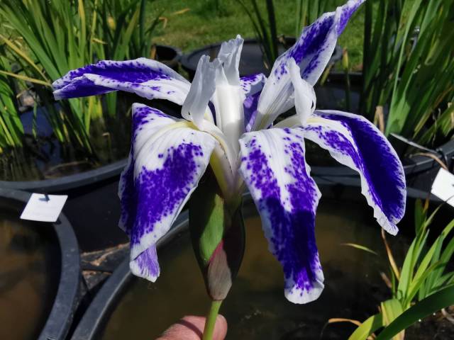 Particularité : le contraste incroyable du blanc et de sa gorsse tache bleue sur chaque pétale.