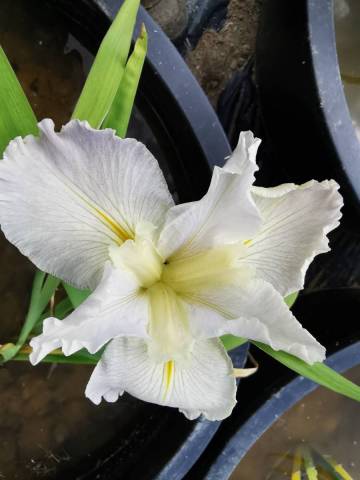 Un iris à la fleur particuliérement majestueuse. En effet, sa grande fleur voluptueuse est d'un blanc imaculé dont le coeur de la fleur posséde des reflets jaunes verts. Il aime le plein soleil. Il est complètement rustique comme tout les iris de Louisiane et préfère avoir les pieds sous l'eau toute l'année.