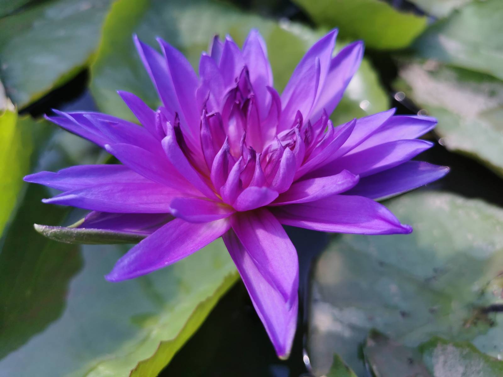 Ce nénuphar tropical est l'un des seuls tropicaux a fleur double. Il est bleu violet et son coeur jaune ne possède pas d'étamines. Il est extrémement florifère comme tout les tropicaux diurnes. Ses fleurs montent au dessus de l'eau. Son feuillage est vert et dentelé. Il a une croissance plus compacte que beaucoup d'autres nénuphars tropicaux ce qui est un atout qui permet de maintenir plus facilement dans un contenant d'au moins 200 litres.