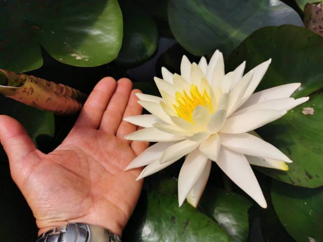 Voici un nénuphar dont on sait peu de chose au niveau de ses origines. Je l'ai nommé ainsi car je ne lui ai pas trouvé son pareil. Il est très florifère et sa fleur est de grande taille, étoilée et très épanouie, d'un pêche aux reflets de roses. Il est très facile a cultiver et il aime les eaux assez chaudes et ensoleillées. Ses feuilles sont vertes, mouchetées de pourpre et le revers est très moucheté.