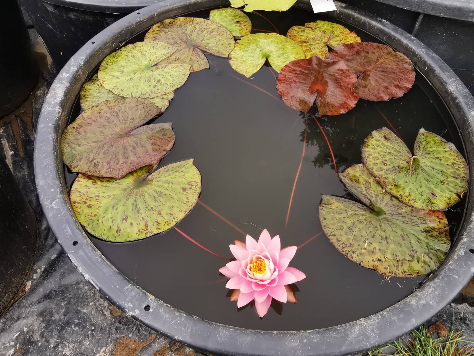 La fleur de ce nénuphar est très sympathique, mais c'est vraiment son feuillage qui le rend incroyable. En effet, le feuillage est très ponctué, mais la feuille passe par de nombreuses couleurs au cours de son développement. Ce qui donne a la surface de l'eau un camaïeu absolument splendide. Sa fleur n'est pas en reste avec des teintes cuivrées roses et une forme assez dense et compacte. Trés facile a cultiver, il aime le plein soleil. Unique en Europe.