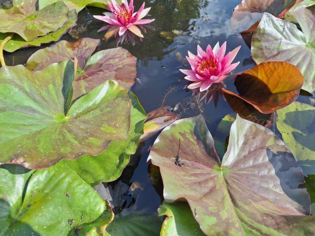 Ce grand nénuphar est une variété ancienne, très rustique, puissante, idéal pour les bassins profonds et les étangs jusqu'à 2 mètres de profondeur. Sa grande fleur est rouge dégradé aux pétales assez pointus. Mais c'est surtout son feuillage qui est d'un joli vert marbré et maculé de pourpre. Ses feuilles sont grandes et orbiculées, elles sont donc franchement couvrantes, idéales pour faire de l'ombre. Très facile a cultiver, il aime le plein soleil, mais tolère assez bien les eaux un peu fraiches.