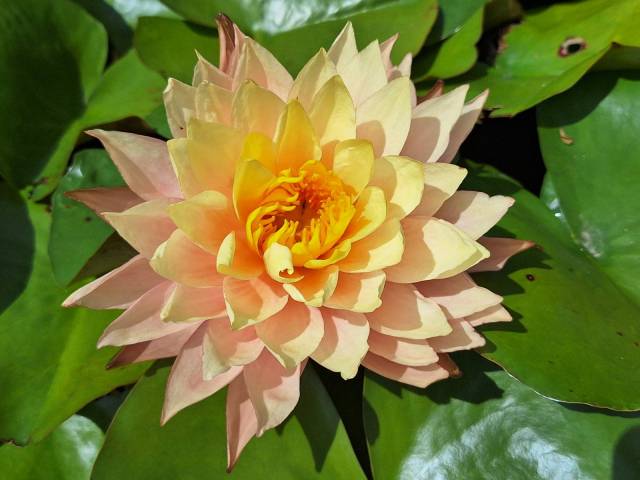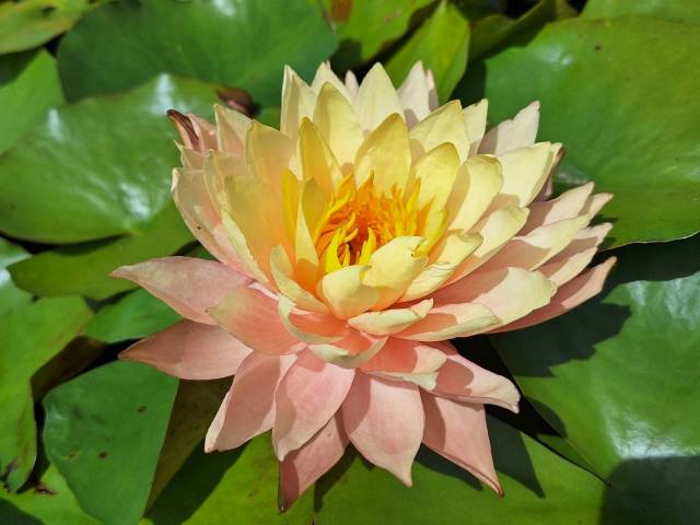 Une variété thaïlandaise à fleurs doubles de grande taille et étoilées. De couleur pêche, c'est une variété qui à besoin de place car son feuillage est puissant. Il aime la profondeur et le soleil direct. Son feuillage juvénile est marbré, puis il verdit par la suite. Sa croissance est compacte, il est très florifère et sain. Une variété fameuse et idéale pour les étangs assez profonds.