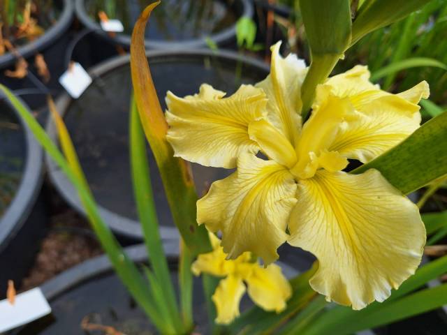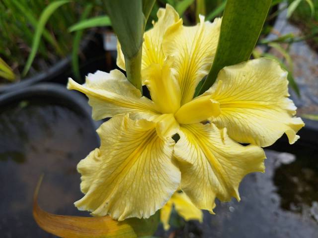 Cet iris possède de très grandes fleurs jaunes froufroutées. Il fleurit en mai juin, son feuillage est persistant. Sa fleur de plus de 15 cm de diamètre est veinée de jaune plus foncé. Il est vigoureux, il aime le plein soleil et les sols riches. Très rustique, il a juste besoin de place comme beaucoup d'iris de Louisiane.