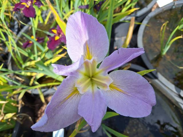 Un iris assez particulier de par la grande taille de sa fleur simple d'une couleur lavande pâle. Il est puissant et aime le plein soleil. Floraison en mai juin, avec ses fleurs qui ne passent pas inaperçues tellement elles sont grandes et larges, au moins 20 cm de diamètre.