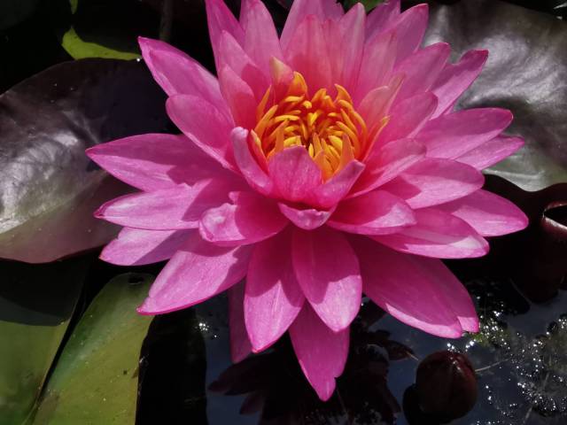 Encore une merveille venue de Thaïlande avec ses pétales de deux couleurs. Rose fuchsia saupoudré de lignes roses pastels. Ses fleurs ne sont donc jamais les mêmes puisque les suffusions roses claires ne sont jamais au même endroit sur les pétales. Son feuillage est lui aussi légèrement marbré : fond vert avec des tâches brunâtres. Il est très florifère et aime le plein soleil. Facile a cultiver, il raviera les inconditionnels du bassin grace à la panachure de ses fleurs. Photos à venir.
