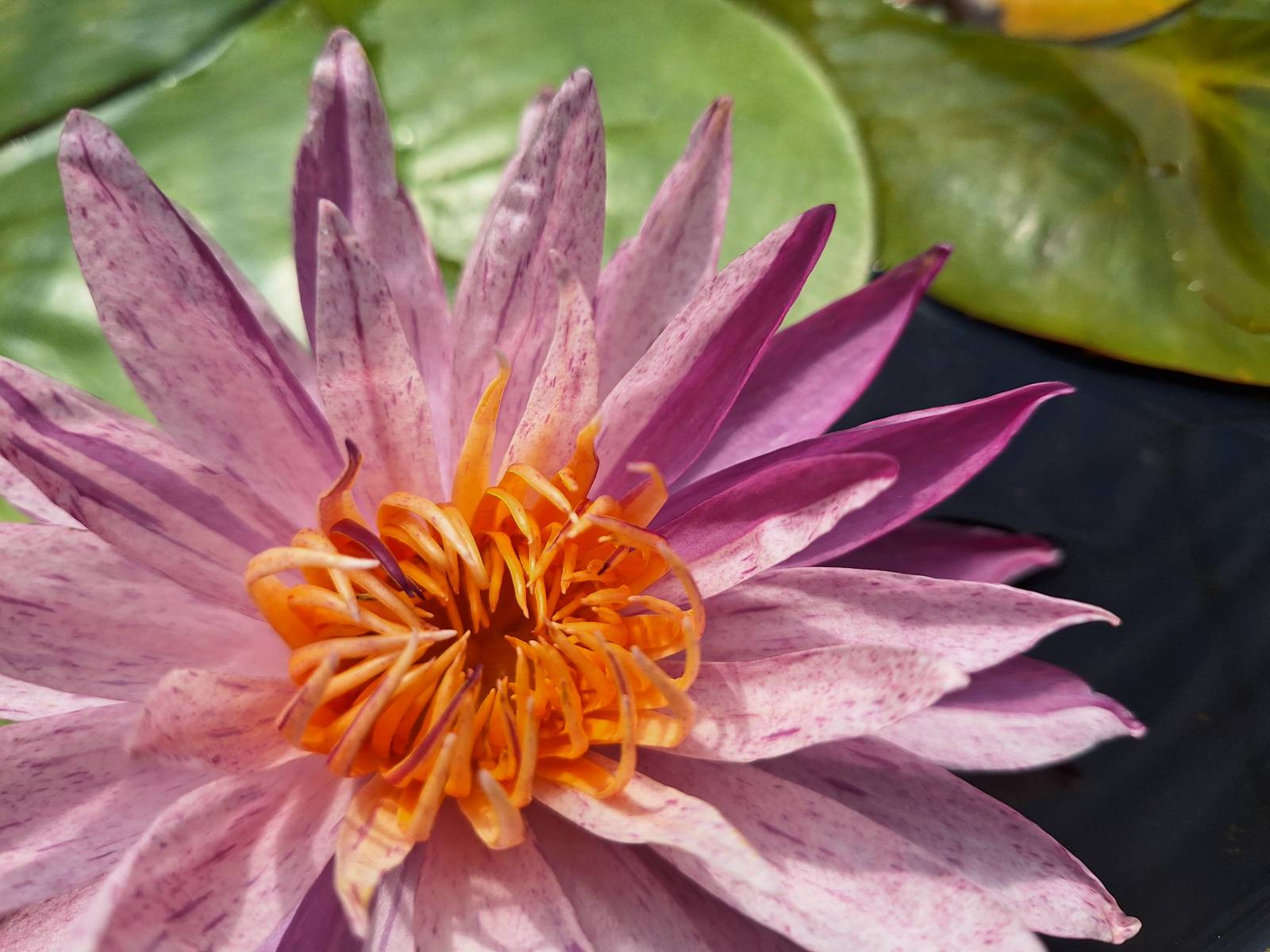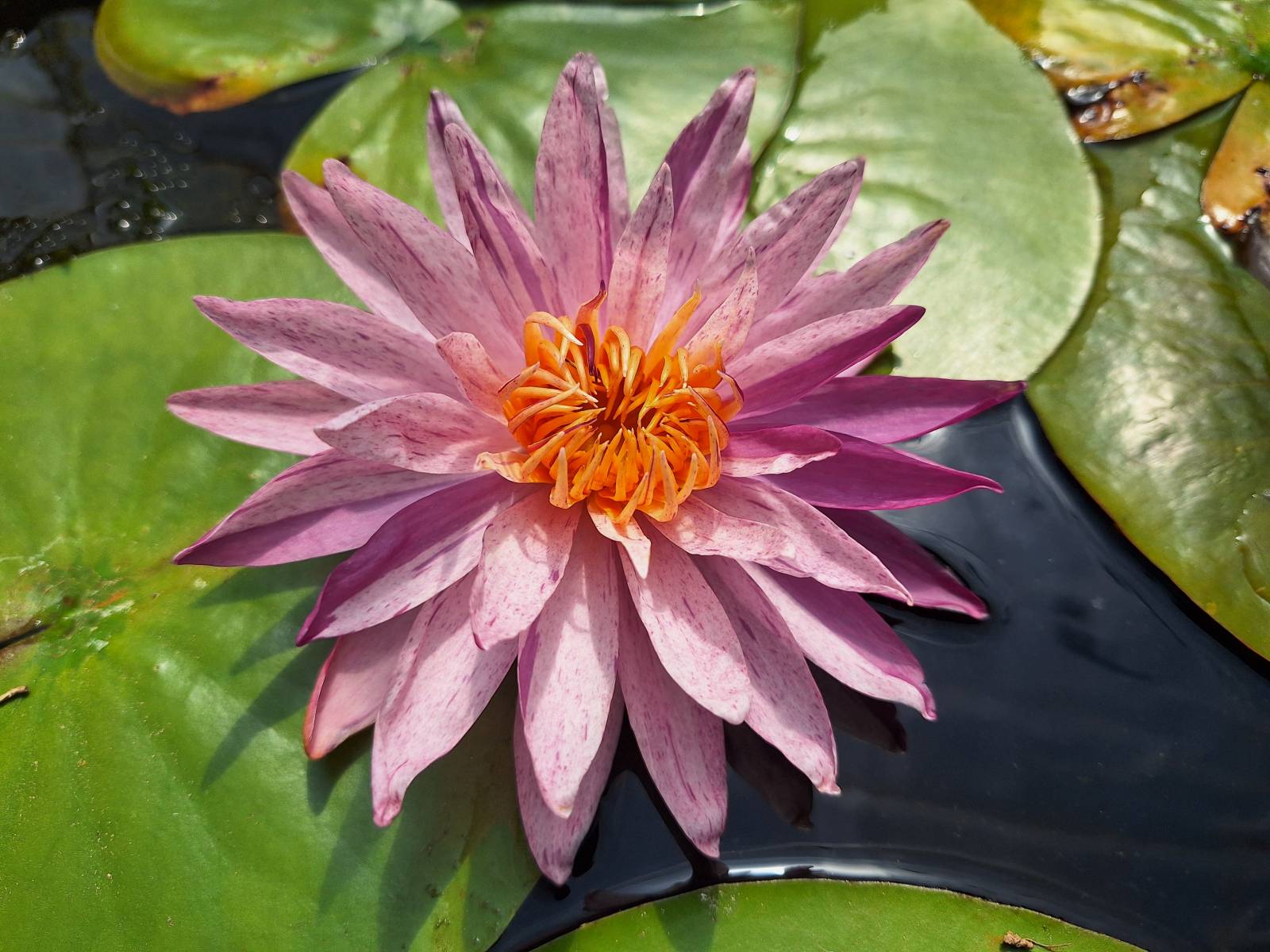 Une variété de nymphéa ISG encore rare. Il a la particularité de posséder une fleur toujours bicolore, des suffusions violettes sont présentes de façon plus ou moins importantes sur un fond rose sur chaque fleur. Elles sont donc toujours différentes. De forme étoilée, cette fleur est bien visible au milieu d'un bassin. Il est très florifère, compact et facile a cultiver dans une eau ensoleillée et calme. Une variété de premier choix pour les collectionneurs.